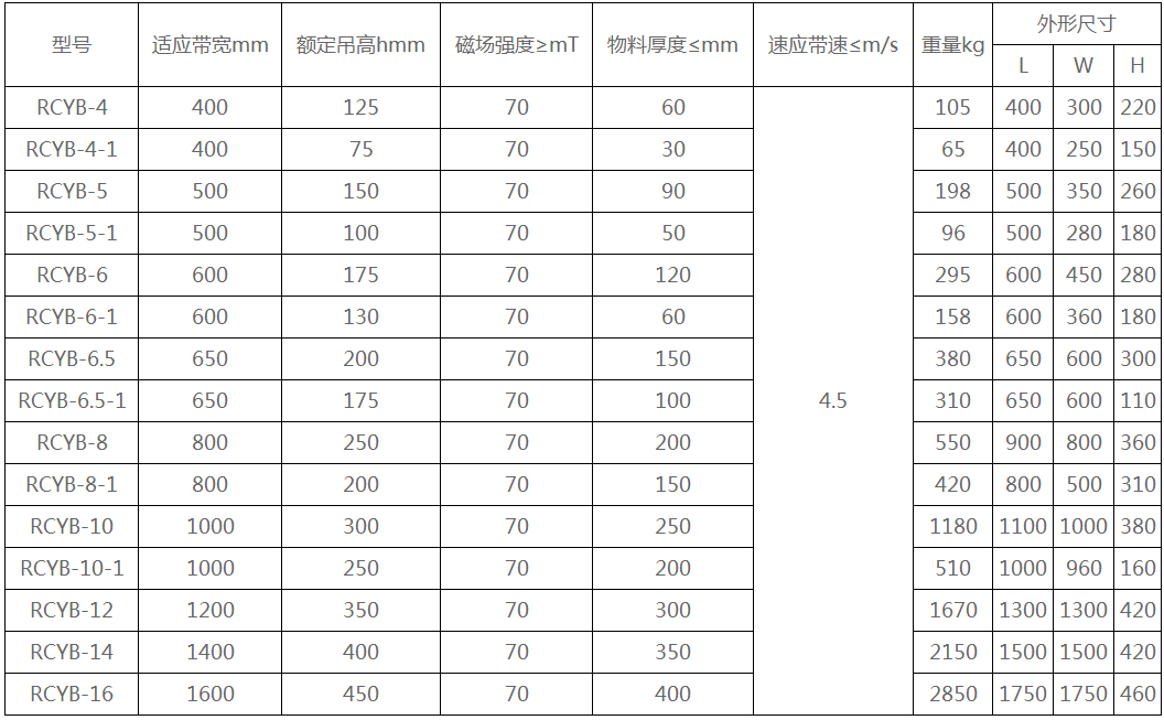 RCYB懸掛式永磁除鐵器